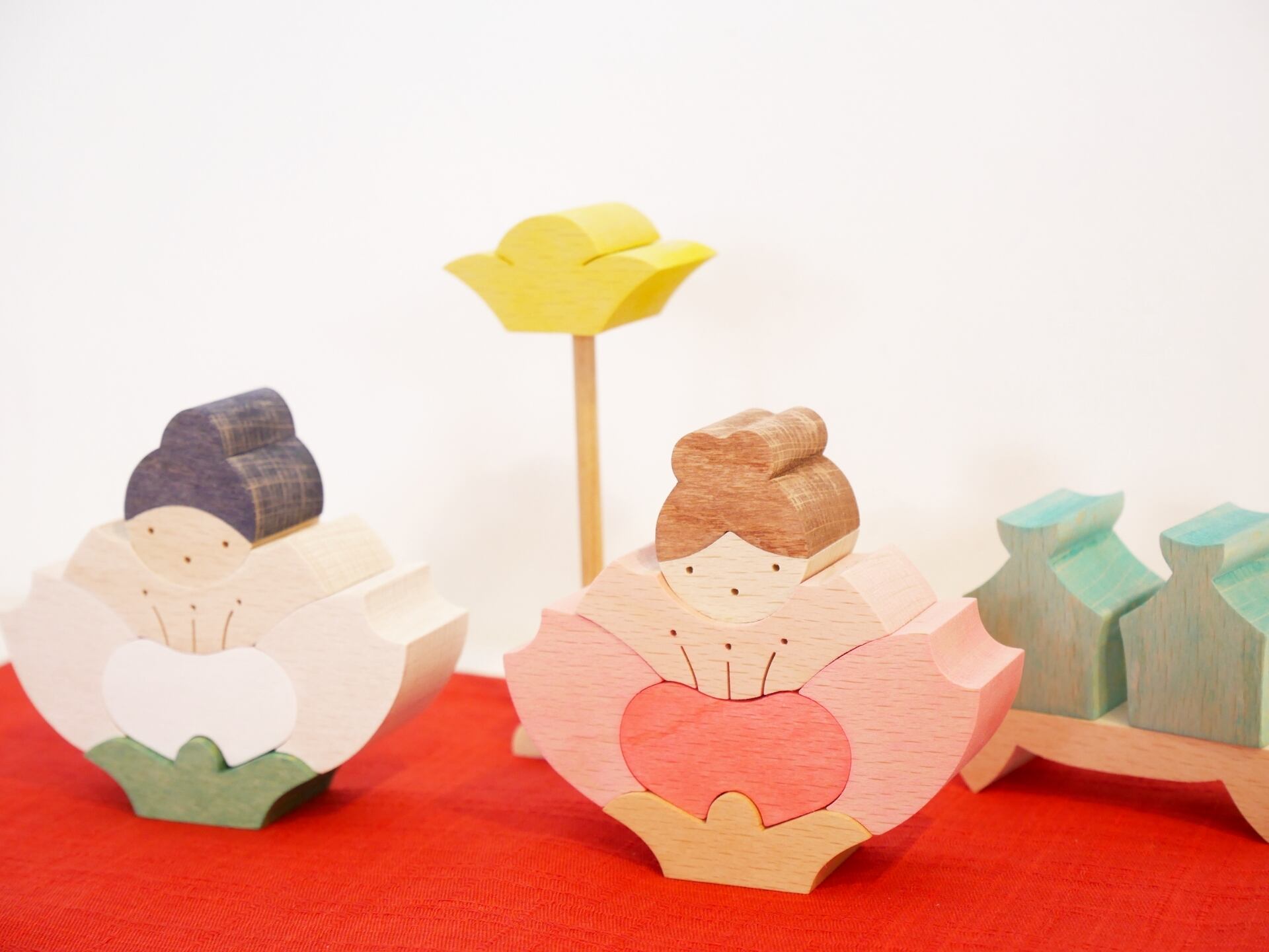 小黒さんのやさしく、愛らしい組み木のお雛様たちは、みているだけでほっこり緩やかな気持ちになります。