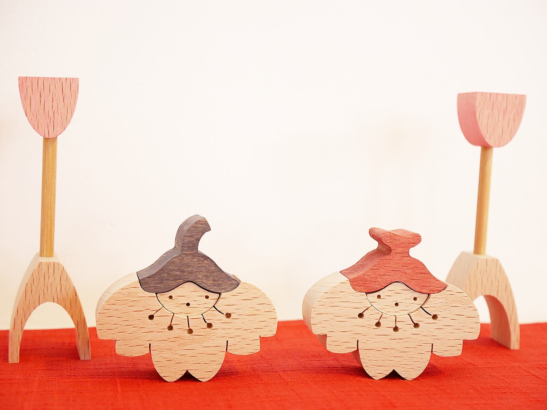 小黒さんのやさしく、愛らしい組み木のお雛様たちは、みているだけでほっこり緩やかな気持ちになります。