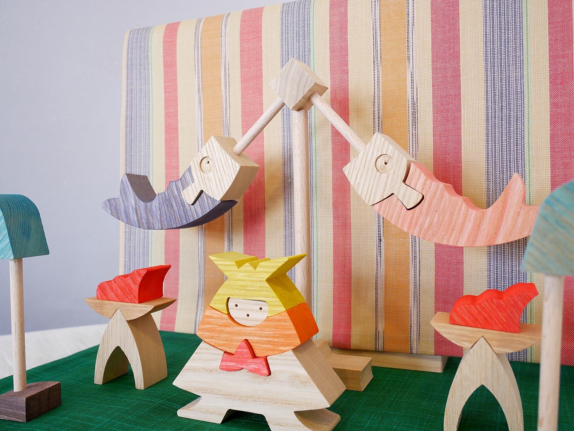 小黒さんのやさしく、愛らしい組み木の作品たちは、みているだけでほっこり緩やかな気持ちになります。