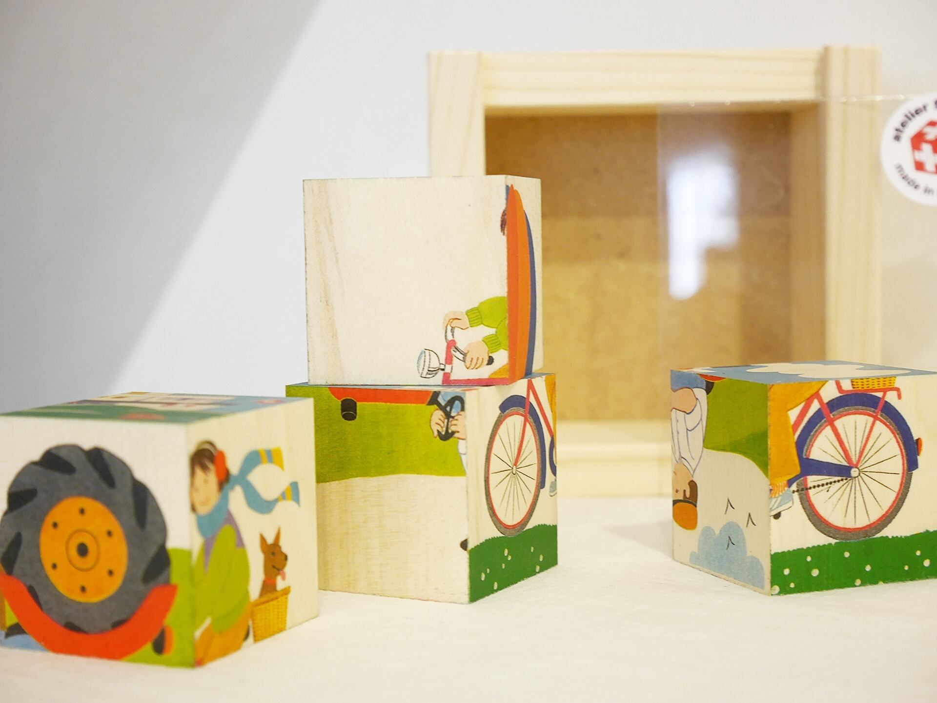 立方体 、一面ずつにそれぞれの異なるイラストが描かれています。 ピースの数によって難易度はそれぞれ。 ピースをコロコロ転がしてつくりたい絵柄を探してゆきます。平面的なパズルにはない六面体ならではのプラスの要素が加わります。