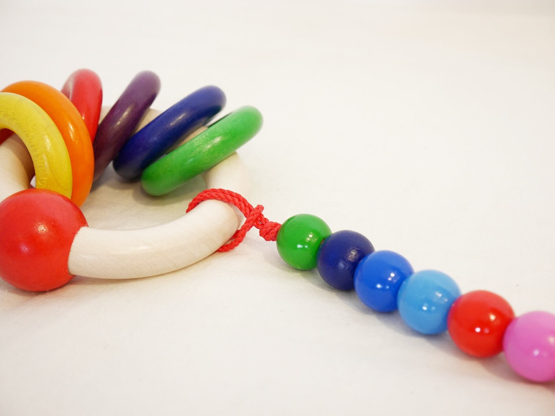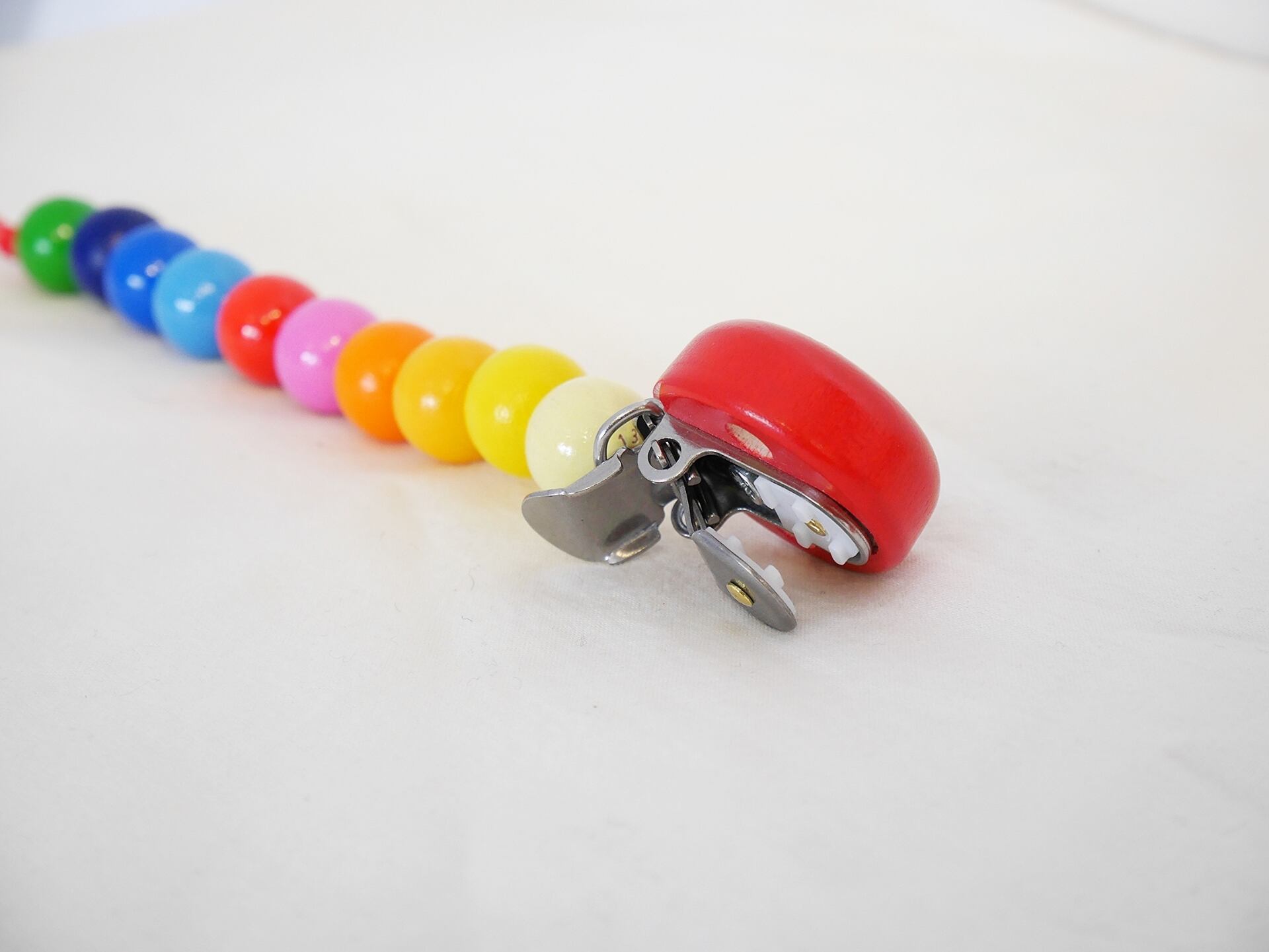 チェーンの先にお気に入りのラトルやおもちゃ、タオルなどを付けます。それを洋服やベビーカーにクリップで取り付けておくと、赤ちゃんがパッと手を離してしまった時も地面に落ちることがなく、落下を防止できます。