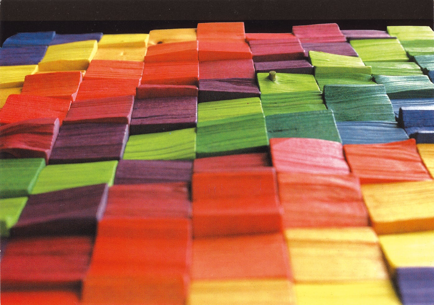 絵画とデザインを学んだのち世界を放浪したリーベルト氏は、その後、社を設立。自身が作る「作品」を「幾何学アート」と呼んでいます。ベリ・カラーとでも名付けたい虹色を基本としたグラデーションは、おとな子どもを問わず人をひきつけ、球や直方体の様々な木製パーツに、思わずさわって遊んでみたくなる不思議さがあります。